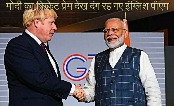 फ्रांसीसी राष्ट्रपति इमैनुअल मैक्रों की तरफ से जी-7 शिखर सम्मेलन के लिए खास मेहमान के रूप में आमंत्रित किए गए मोदी ने इंग्लैंड के प्रधानमंत्री से मुलाकात की और फिर उन्हें एशेज मैच जीतने की खबर दी।