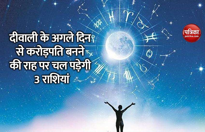 हमेशा कार्तिक मास के कृष्ण पक्ष की अमावस्या को दिवाली का त्योहार मनाया जाता है, जो ग्रेगोरी कैलेंडर के अनुसार अक्टूबर या नवंबर महीने में पड़ता है। दिवाली हिंदुओं का सबसे बड़ा और महत्वपूर्ण त्योहारों में से एक है। इसे लाइट फेस्टिवल के नाम से जाना जाता है। आध्यात्मिक रूप से यह अन्धकार पर प्रकाश की विजय को दर्शाता है। दिवाली के अगले ही दिन राशियों की दशा में काफी परिर्वतन होगा। कुछ राशियां जैसे मेष, वृषभ और तुला पर लक्ष्मी मां की विशेष कृपा बरसने वाली है।