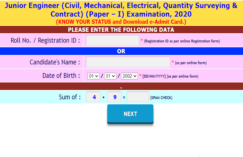 जिन उम्मीदवारों ने जूनियर इंजीनियर (सिविल, मैकेनिकल, इलेक्ट्रिकल, क्वांटिटी सर्वे एंड कॉन्ट्रैक्ट) पेपर- I परीक्षा 2020 के लिए आवेदन किया है, वे एडमिट कार्ड डाउनलोड करने के लिए आयोग की संबंधित क्षेत्रीय वेबसाइट पर जा सकते हैं। परीक्षा का आयोजन कर्मचारी चयन आयोग द्वारा 22 से 25 मार्च तक किया जाएगा।